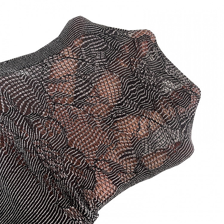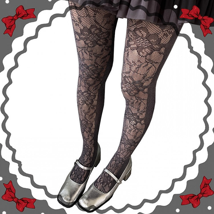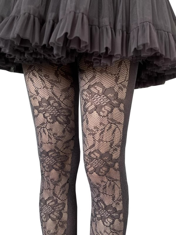 Netzstrumpfhose mit Spitze und Blumen- und Blättermuster