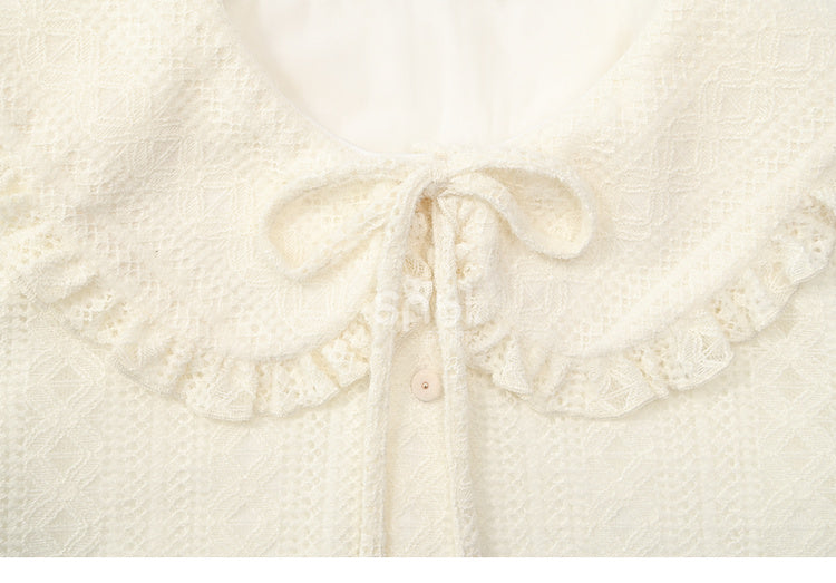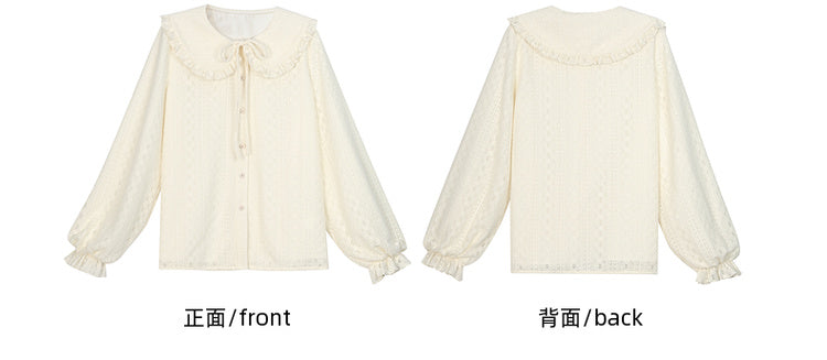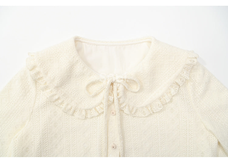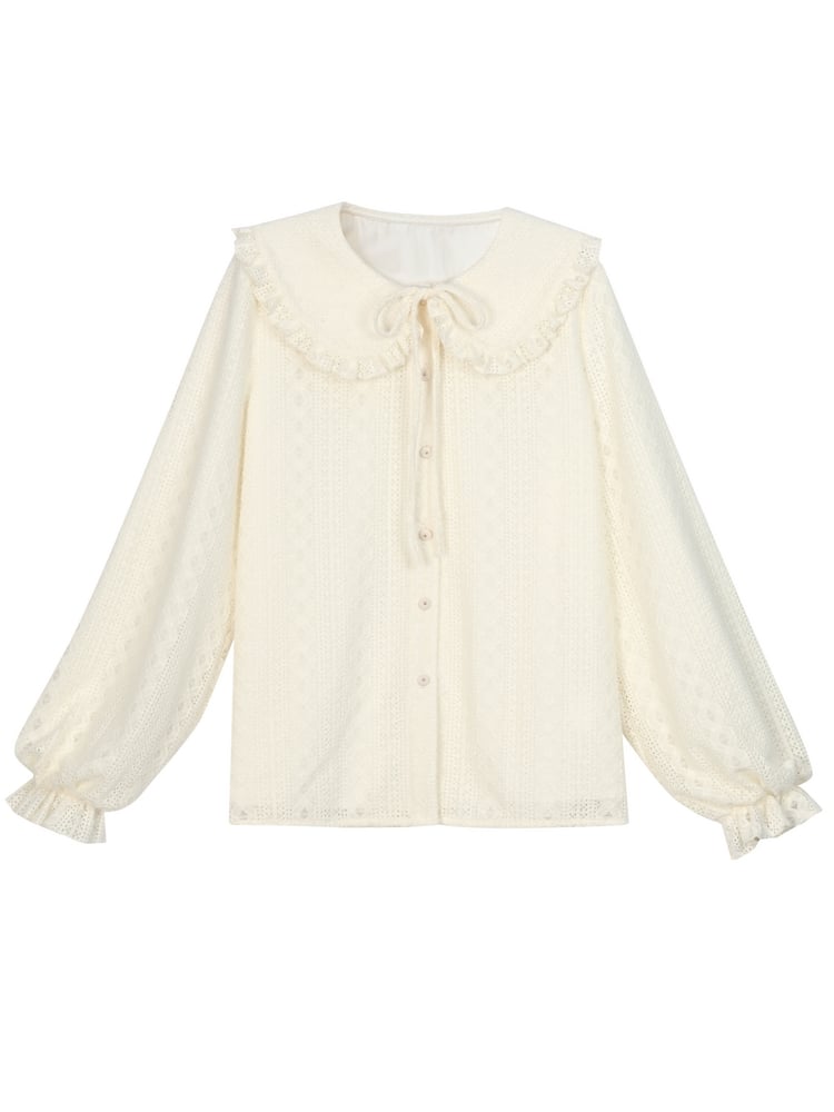 Diese bezaubernde Bluse mit zartem Peter-Pan-Kragen und verspielten Ballonärmeln verleiht jedem Outfit einen Hauch von Charme. Die aufwendige Spitzenverzierung wertet den Look auf und macht ihn perfekt für legere und elegante Anlässe. Mit diesem Must-have bleiben Sie stilvoll und charmant.