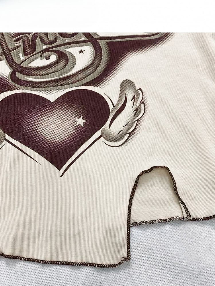 Aprikosenärmel-Design, langer Druck, asymmetrisch, Bittersüße Henne