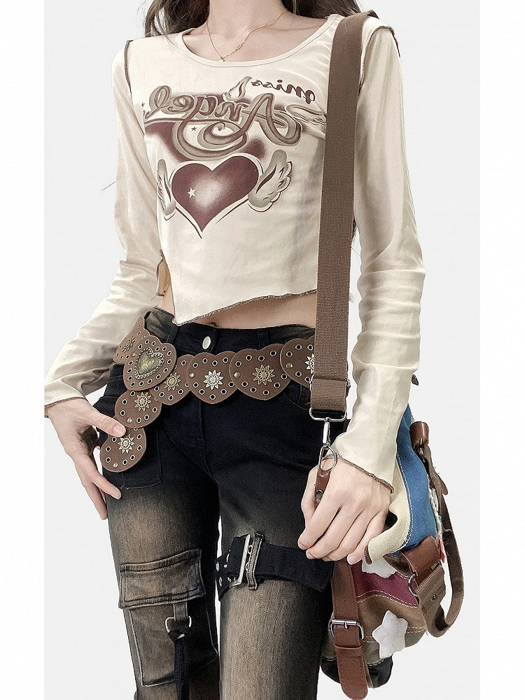 Apricot Bittersweet Print Design Asymmetrisches Hen Long Sleeves Top