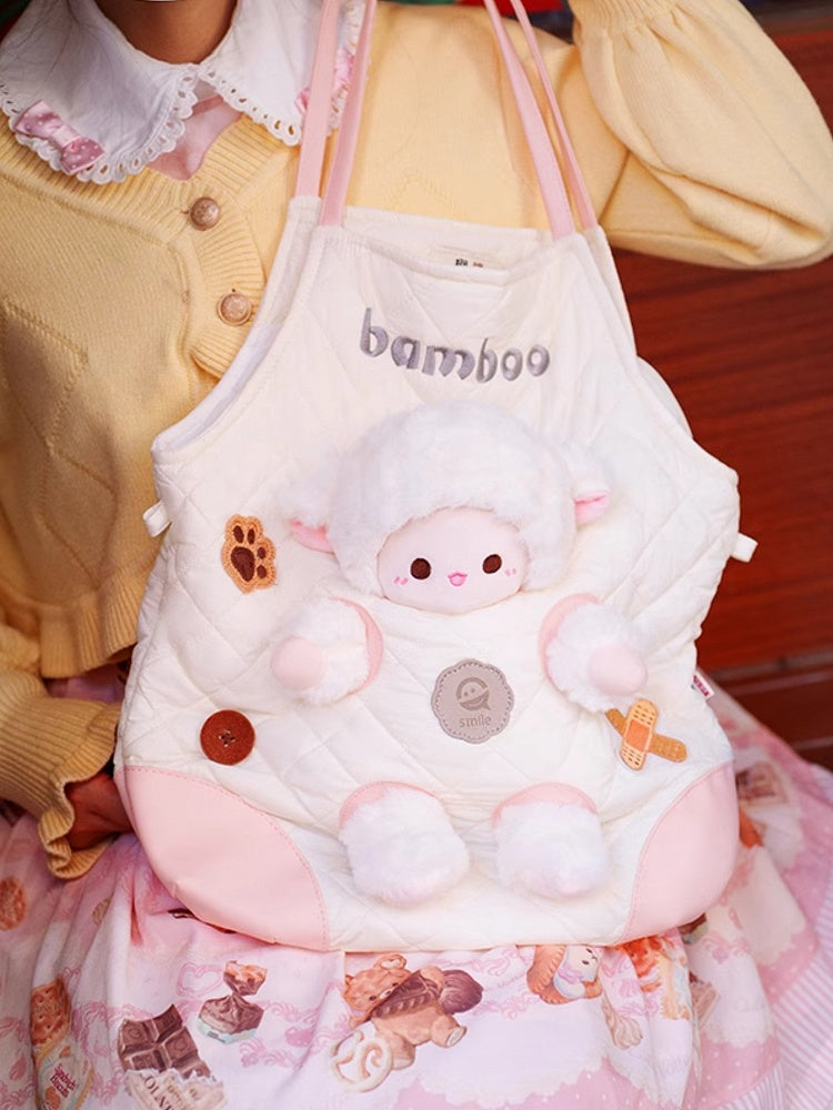 Umhängetasche mit Cut-out-Design in Weiß und Rosa mit 3 abnehmbaren Plüschteilen