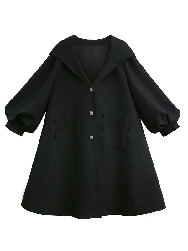 Schwarzer adretter langer Kapuzenmantel mit Ballonärmeln