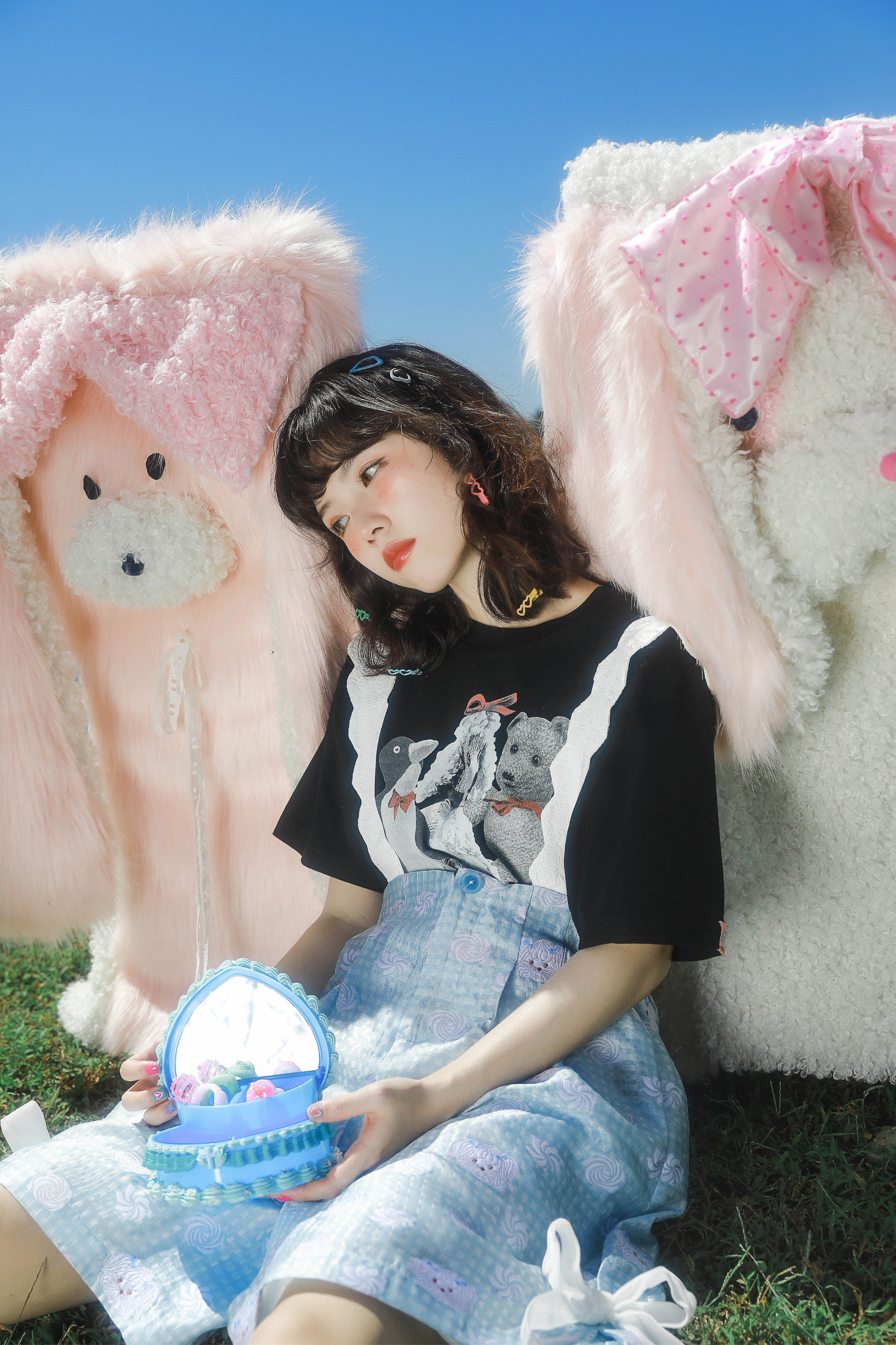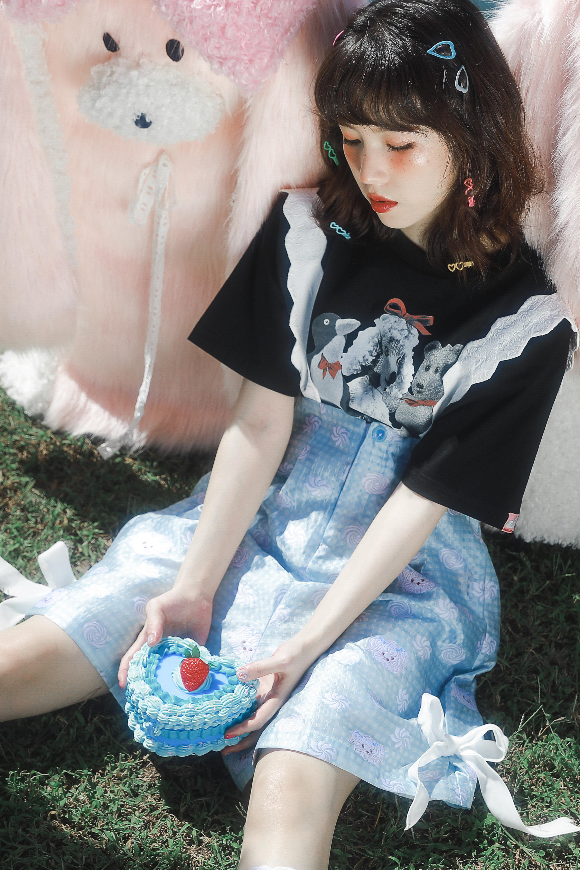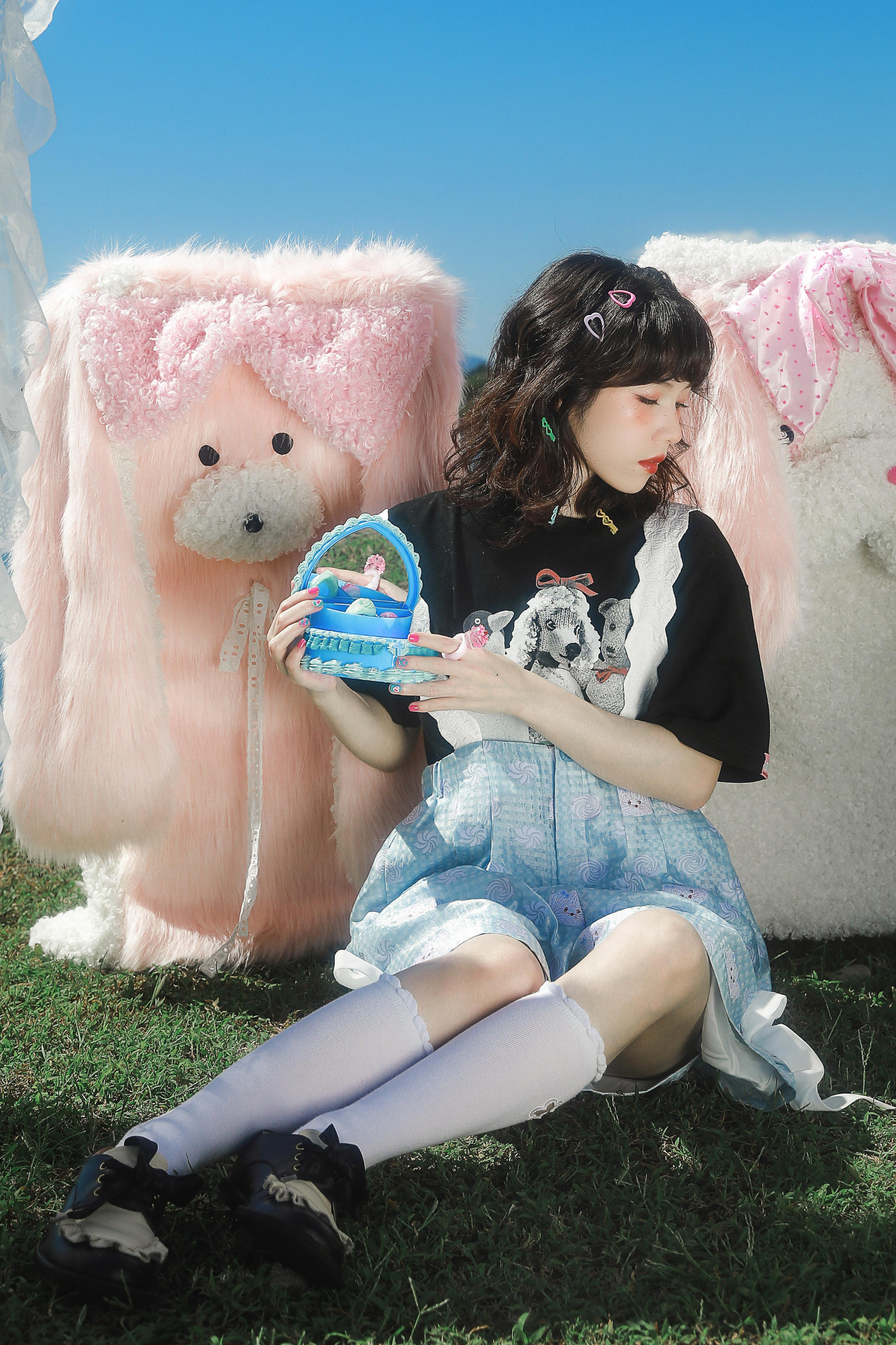 Schwarz-weißes Old School Lolita Fashion Kleid Bowknot Lolita JSK Set