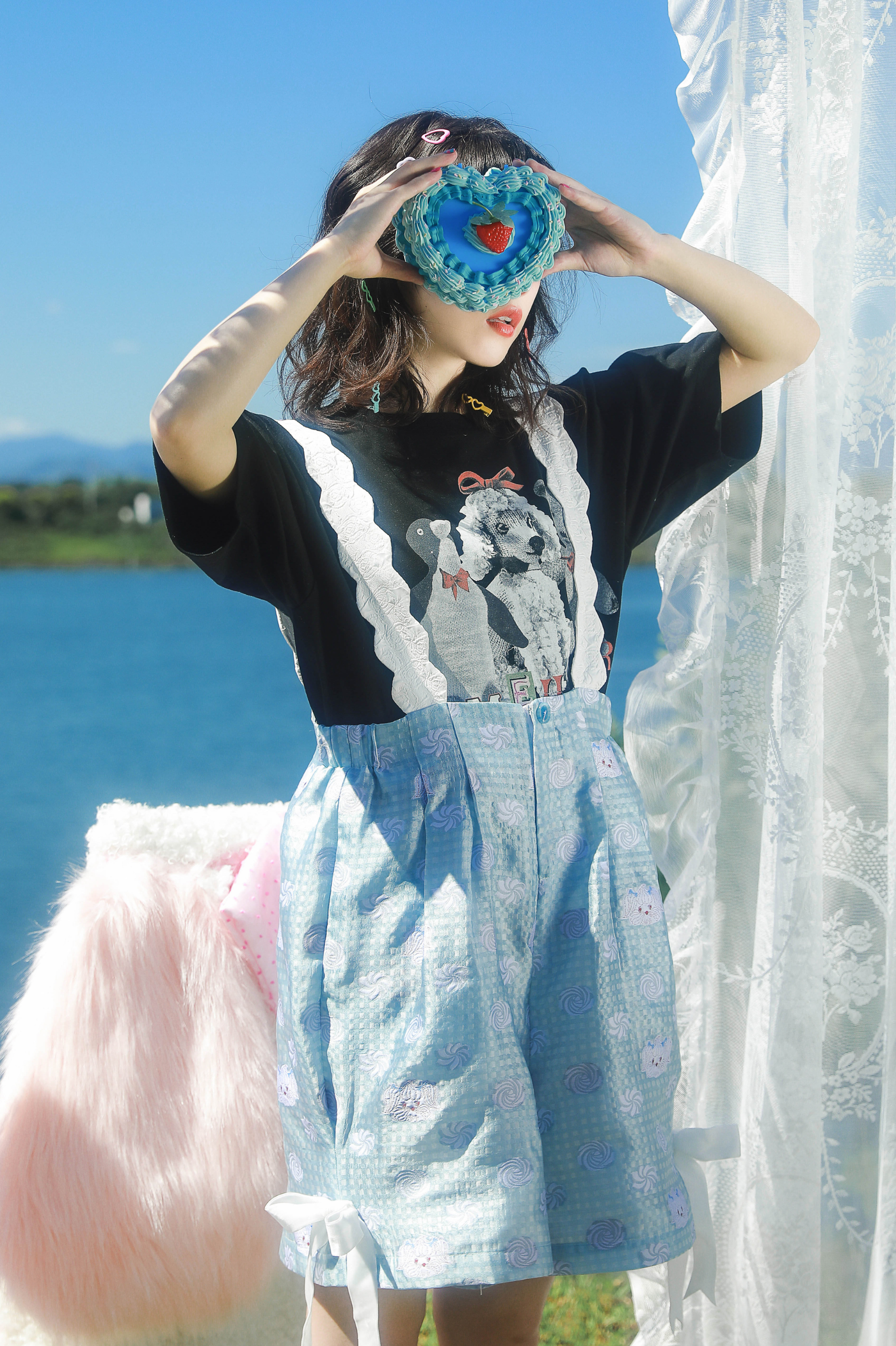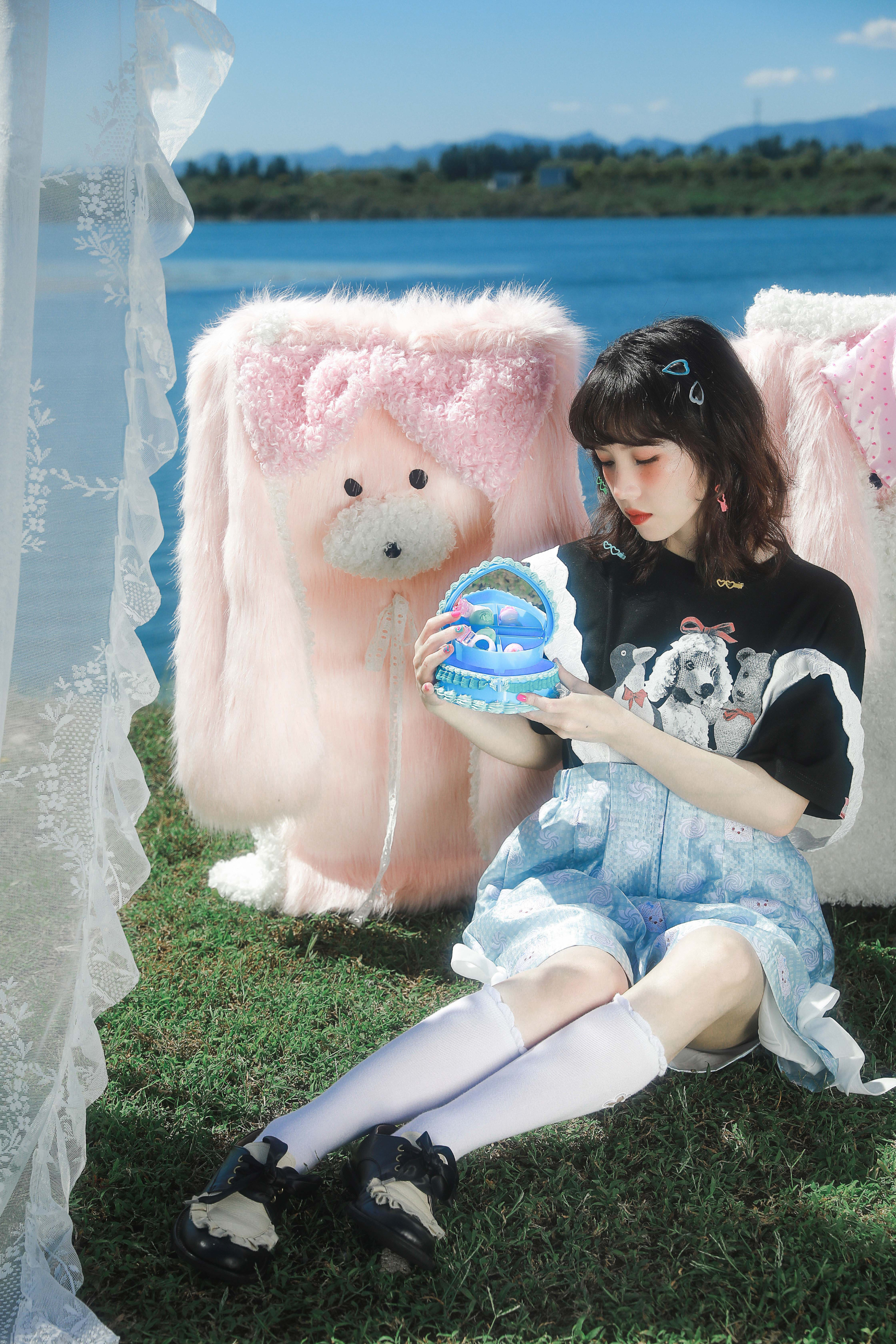 Blau-weißes Old School Lolita Fashion Kleid mit Schleife und Details, JSK-Set