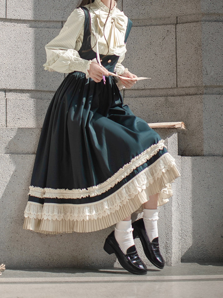 Schwarz-weißes Old School Lolita Fashion Kleid Bowknot Lolita JSK Set
