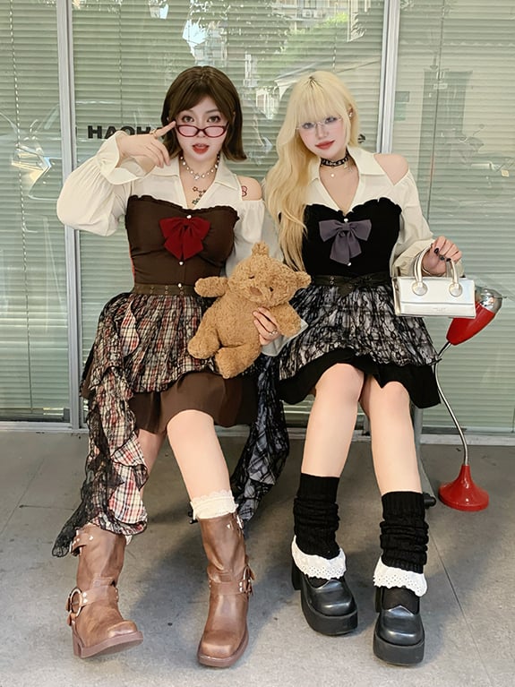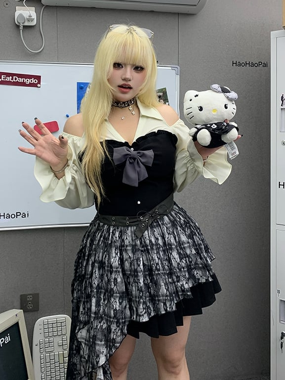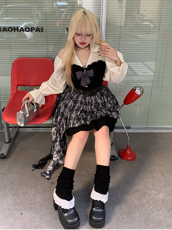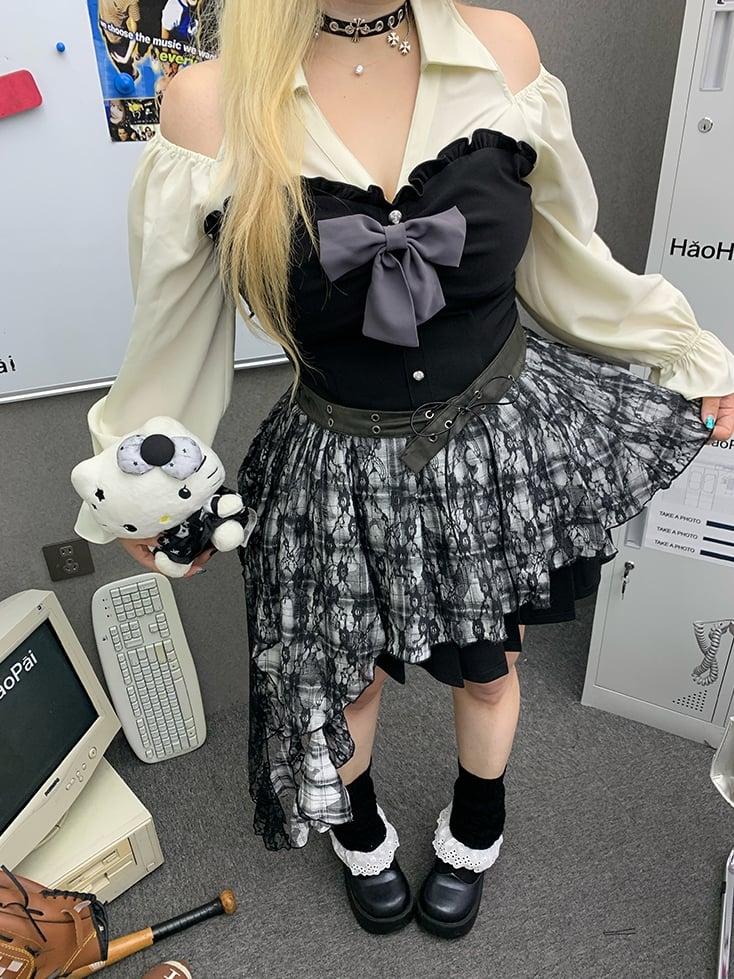 Schwarz-weißes Old School Lolita Fashion Kleid Bowknot Lolita JSK Set