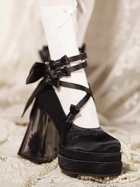 Schwarze Kamelienblüte mit hohem Blockabsatz, elegante Plateau-High-Heels