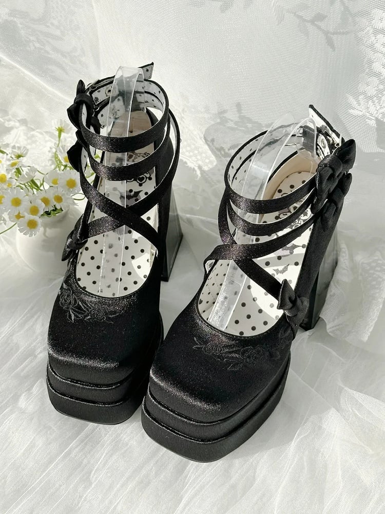 Erleben Sie die perfekte Mischung aus Niedlichkeit und Raffinesse mit diesen atemberaubenden Satin-Heels. Der Schuh verfügt über eine exquisite Kamelienblütenstickerei, die einen
