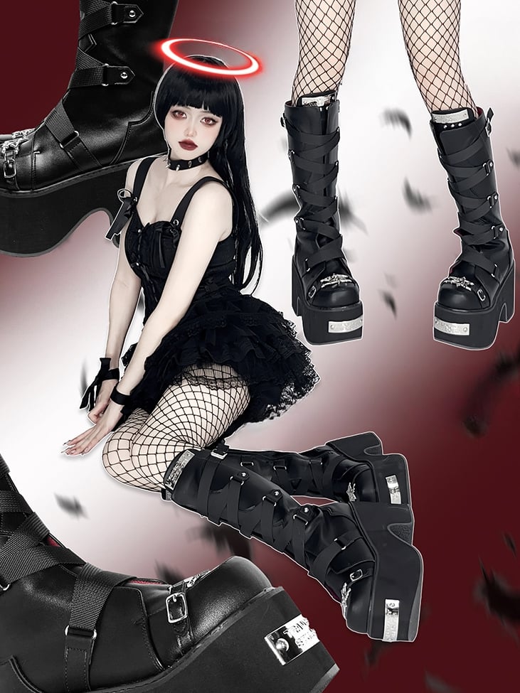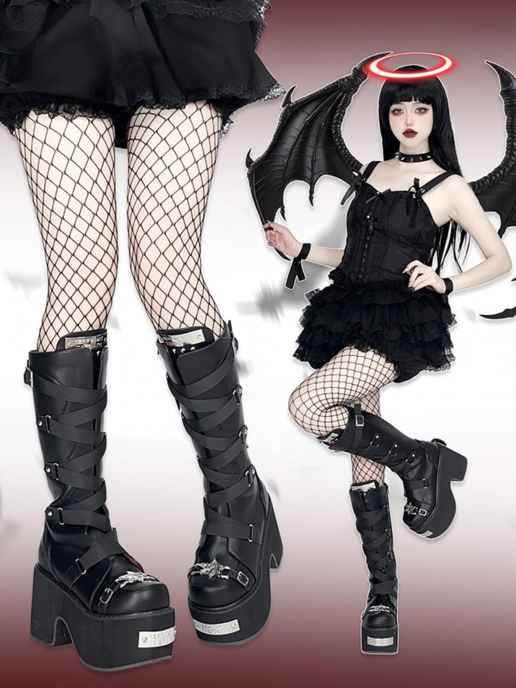 Diese schwarzen Plateaustiefel mit überkreuzten Schnallenriemen und Blockabsatz sind die perfekte Mischung aus Stil und Komfort. Die überkreuzten Schnallenriemen verleihen einen Hauch von Niedlichkeit, während der Plateauabsatz für Stabilität und Höhe sorgt. Diese Stiefel werten jedes Outfit auf und sorgen dafür, dass Sie den ganzen Tag über fabelhaft aussehen.