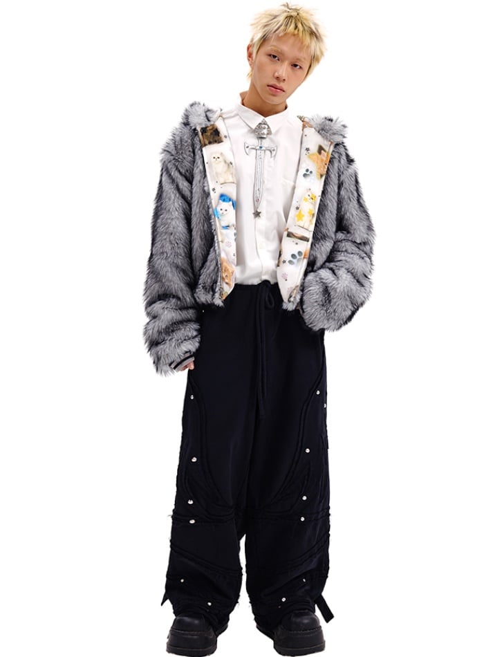 Schwarz/silberne Halskrause in Schwertform mit Nieten
