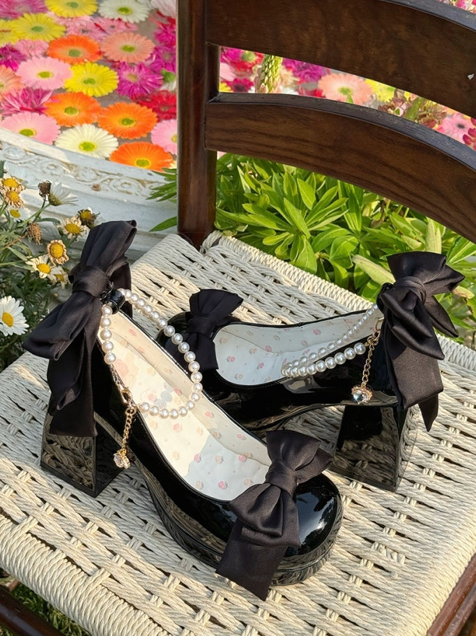 Schwarze Zehenschuhe mit Schleife und Plateaudetails, runde Janes, Sweet Mary Lolita