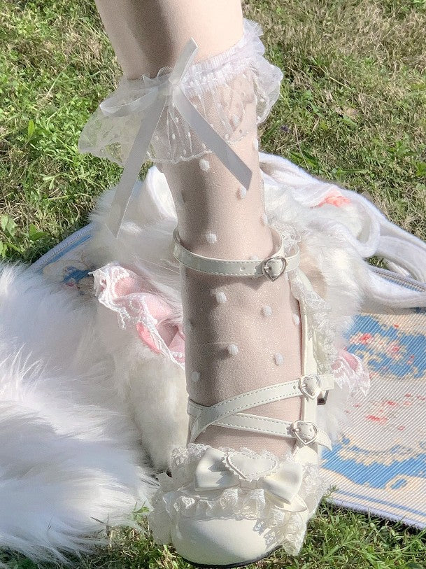 Black/White Lace Bow Pattern Lolita Cuff Polka-dot Socks