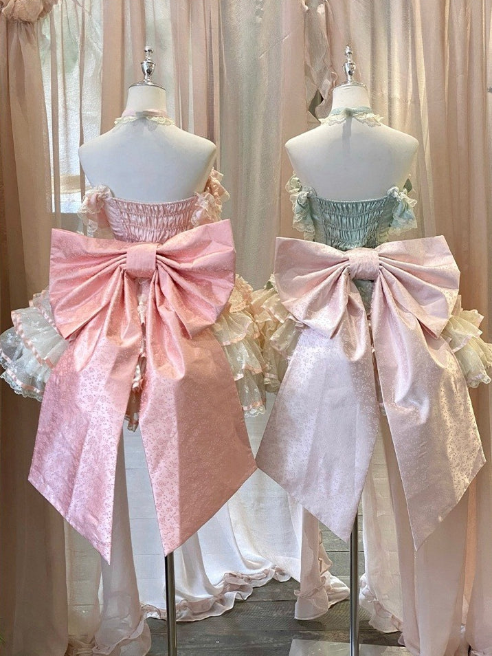 Rosa und weißes Old School Lolita Fashion Kleid Bowknot Detais Lolita JSK Set