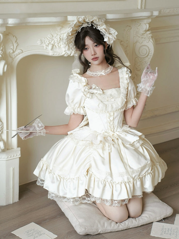Schwarz-weißes Old School Lolita Fashion Kleid Bowknot Lolita JSK Set