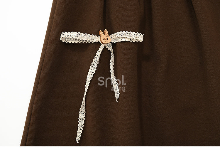 Dieser bezaubernde knöchellange Rock verfügt über eine braune Schleife und einen karierten Rüschensaum. Perfekt, um jedem Outfit einen Hauch von Charme zu verleihen.
