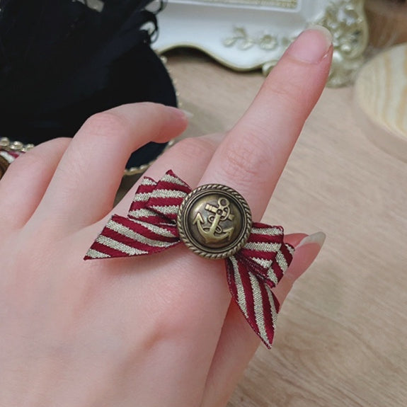 Knopfring Anker Rot Gestreift Schleife Schiffsmuster