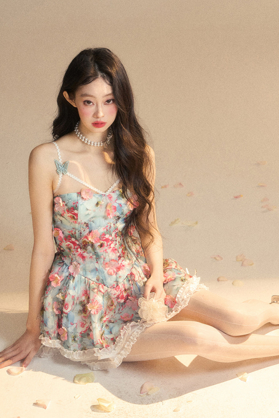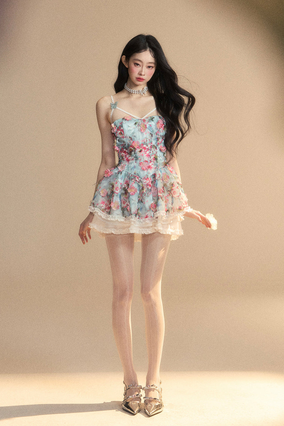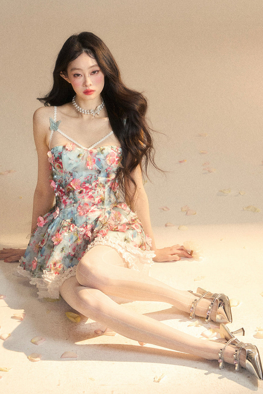 ❤Prinzessin-Camisole-Kleid mit Blumenmuster❤