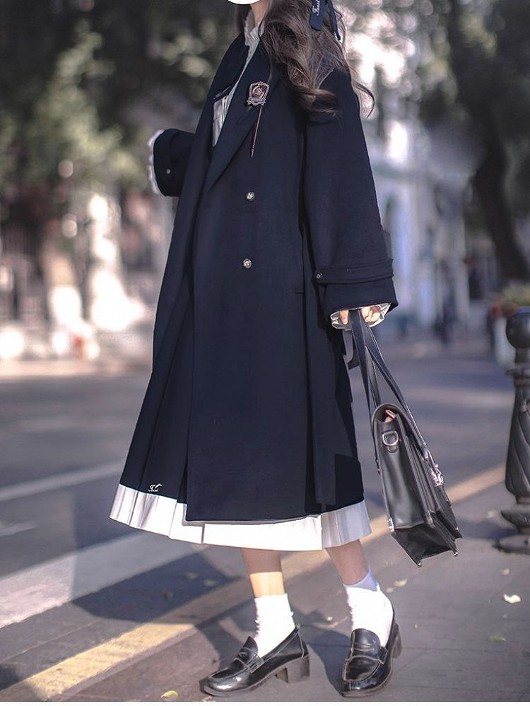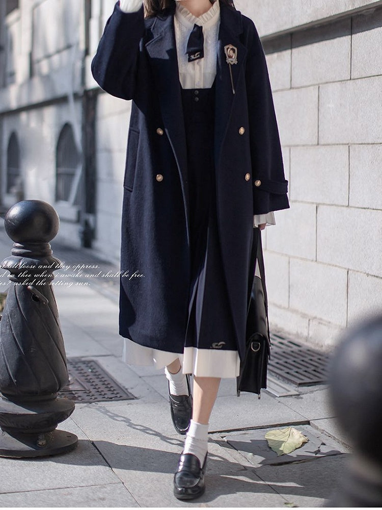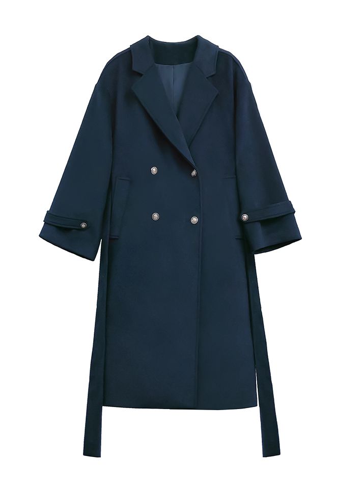 Dunkelblauer Cabanmantel mit V-Ausschnitt
