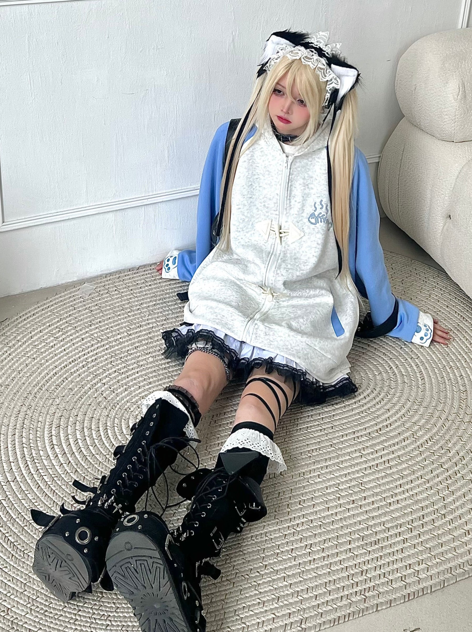 Kragen Kapuze Hoodie Kontrast Knopf Katzenohr Reißverschluss Horn