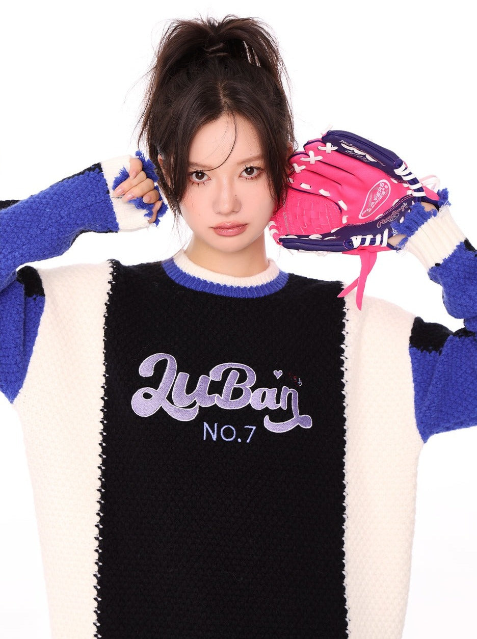 Beschädigter Strick mit Logo in Kontrastfarbe