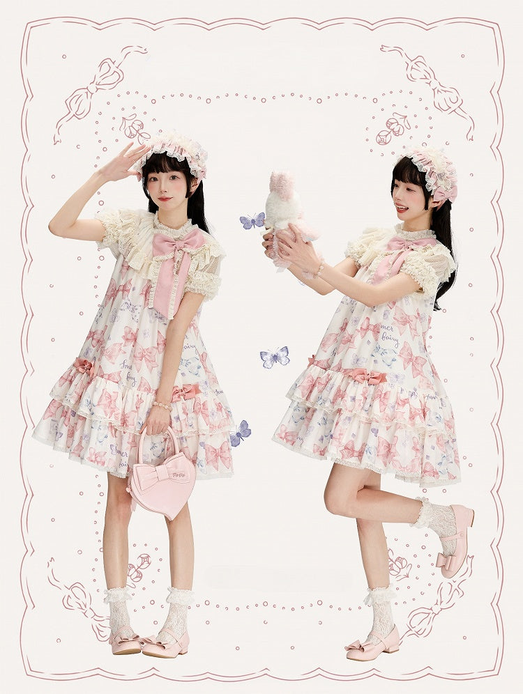 Rosa und weißes Old School Lolita Fashion Kleid Bowknot Detais Lolita JSK Set
