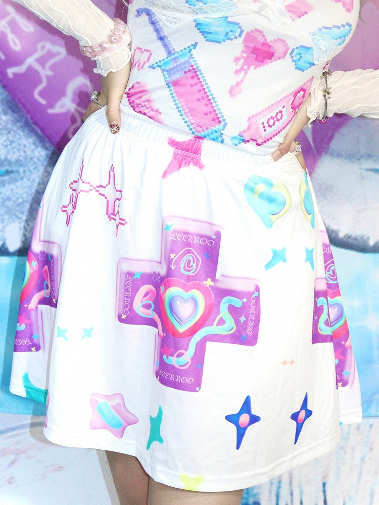 A-Linien-Rock mit Kreuz-Herz-Print und weiß/schwarzem Sternmuster
