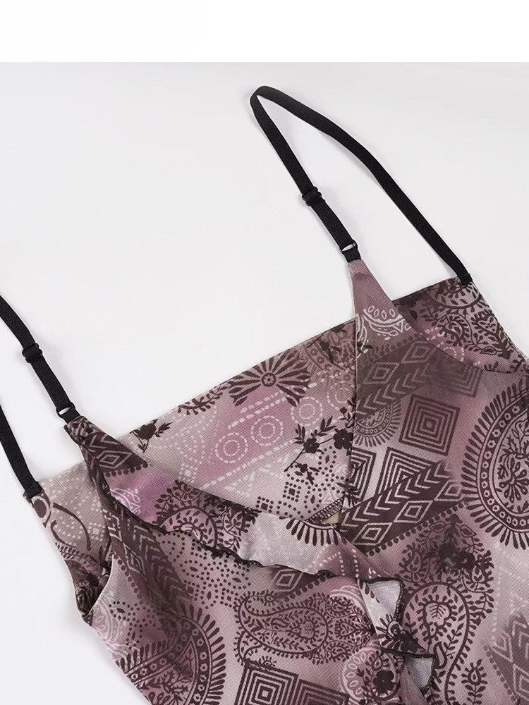 Design Print Millard Fashion Asymmetrischer Saum Lila + Kleid Cami