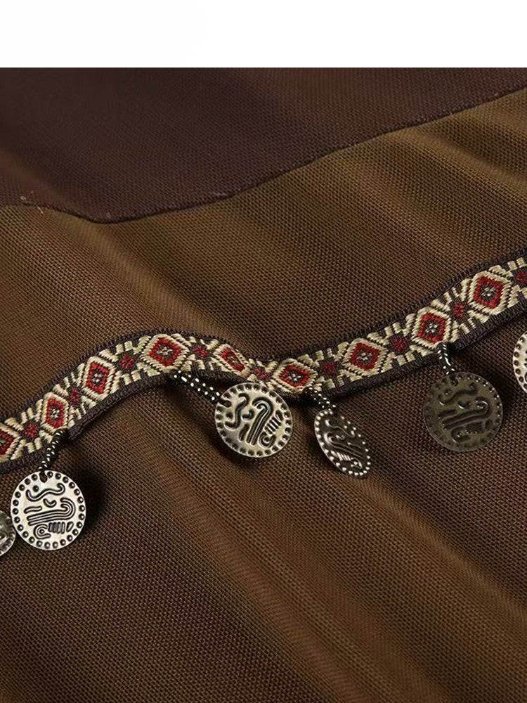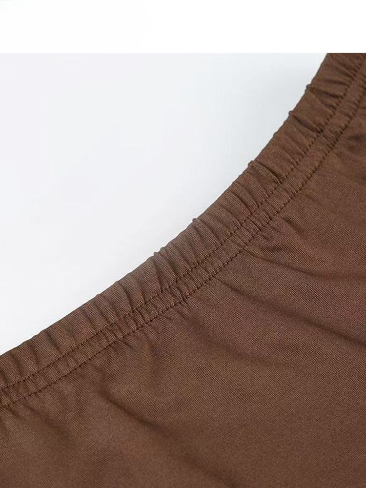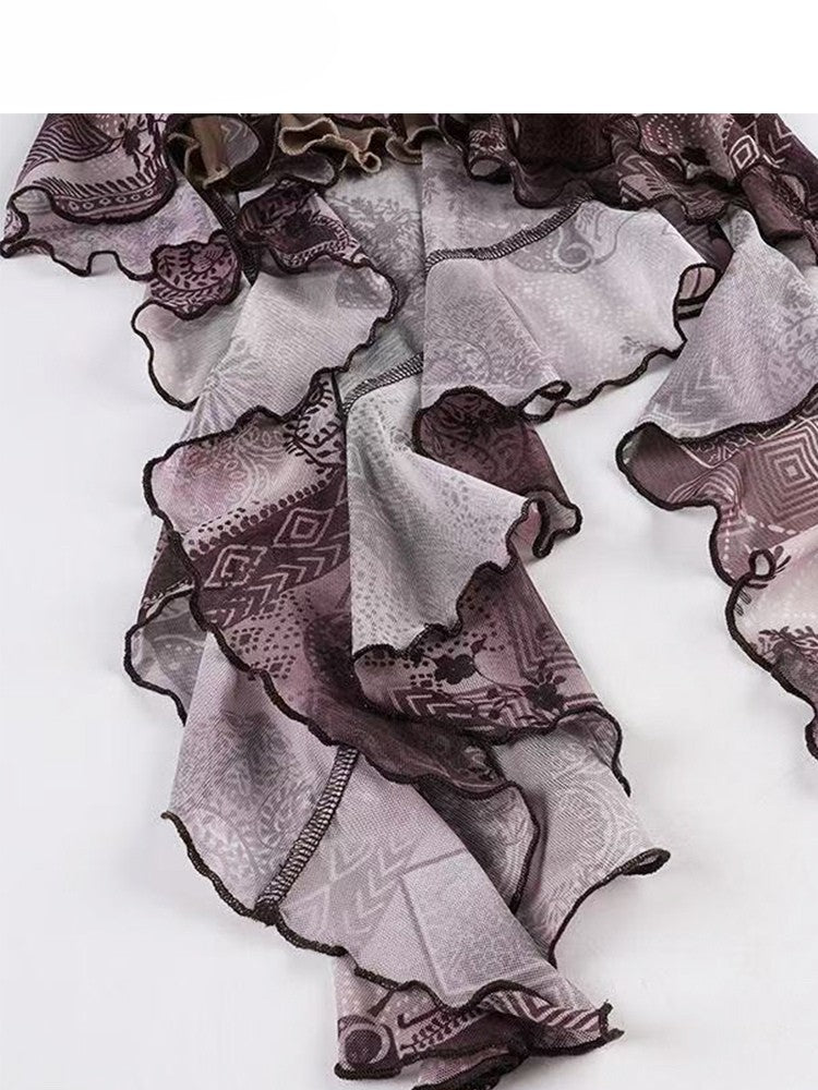 Lilafarbenes Camisole-Kleid mit asymmetrischem Saum und Millard Fashion Print-Design + brauner Rock mit Überzug