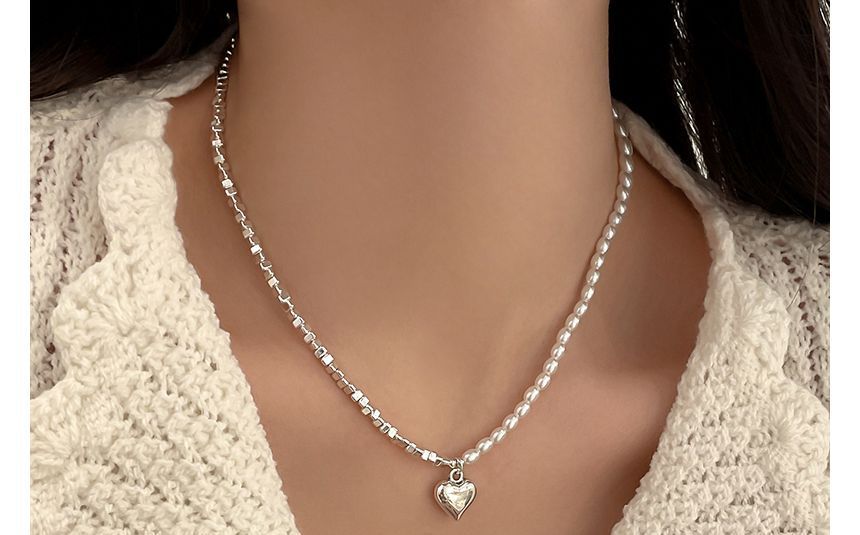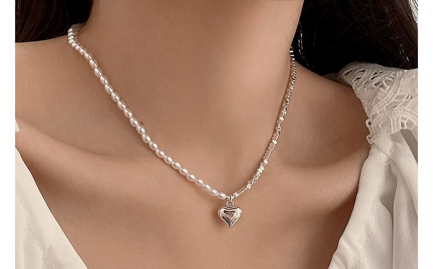Designs) Herz-Imitat-Halskette (verschiedene Legierungen / Perlen