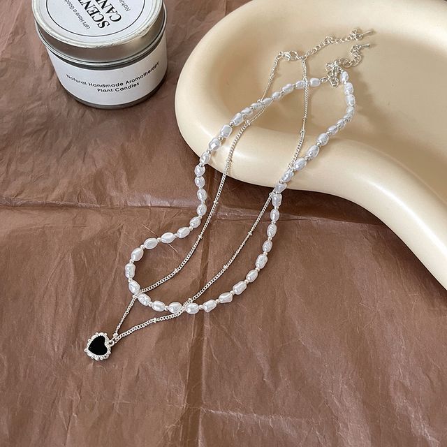 Farbe: | Schwarzes Herz & Kunstperlenkette - Silber & Weiß |