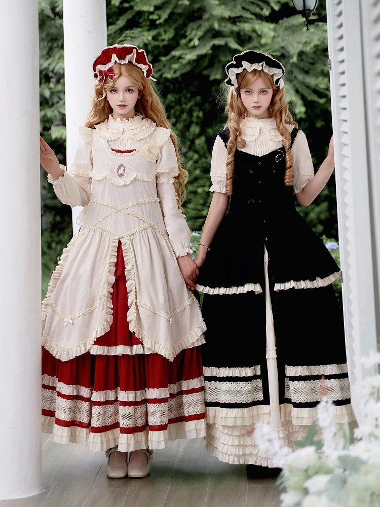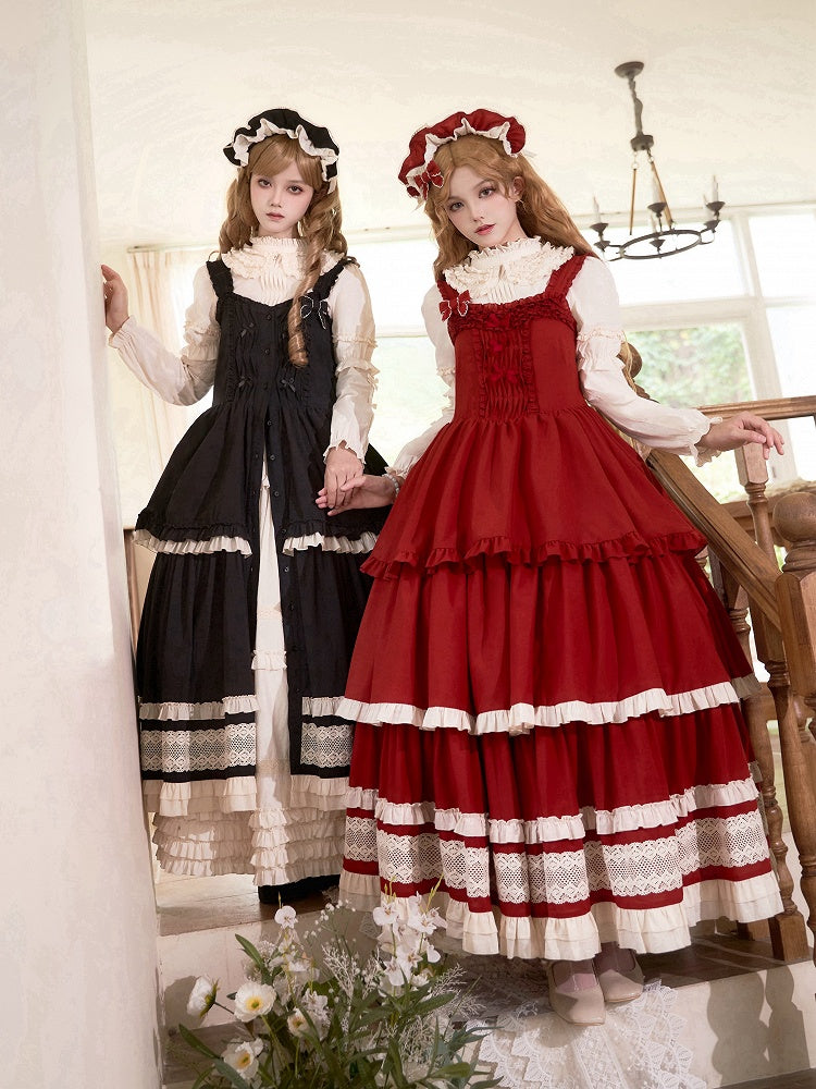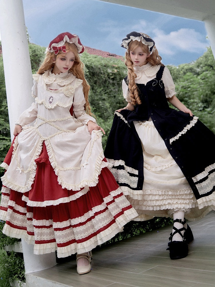 Schwarz-weißes Old School Lolita Fashion Kleid Bowknot Lolita JSK Set