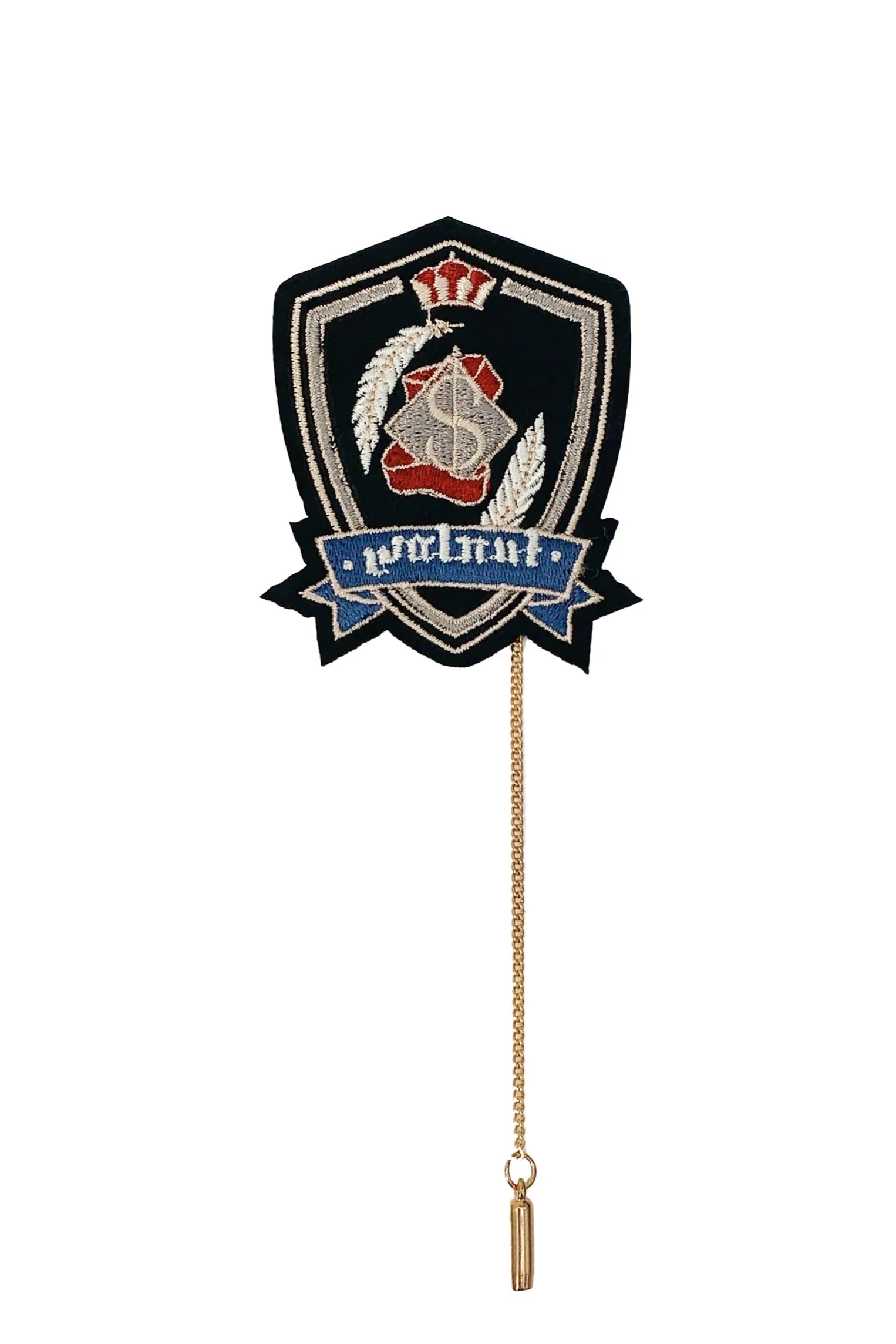 Kleid Marineblau Brosche Elegant Retro Blau + Band Schlank
