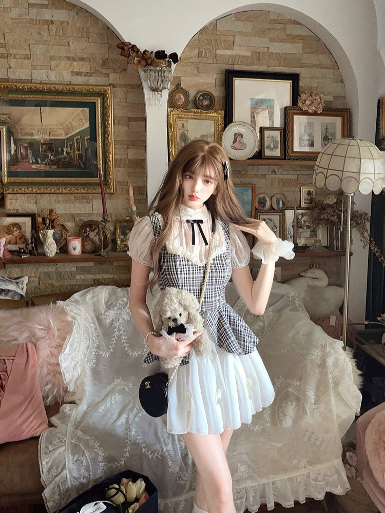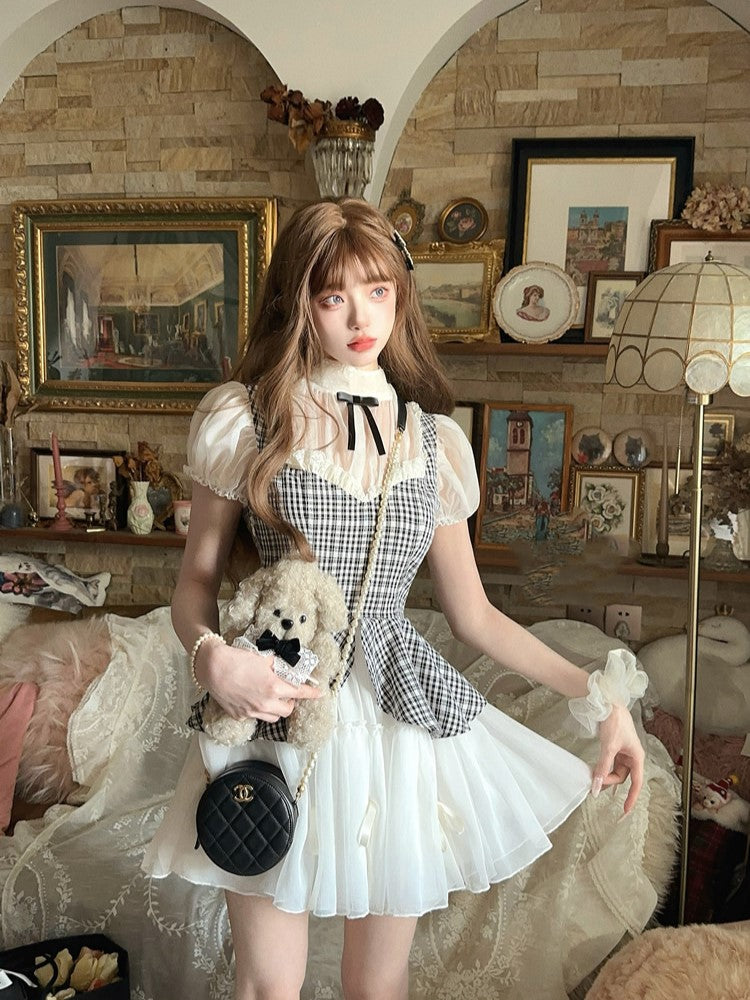 Schwarz-weißes Old School Lolita Fashion Kleid Bowknot Lolita JSK Set