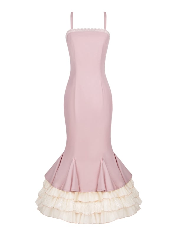 Elegantes Meerjungfrau-Unterkleid mit Rüschen und drei rosa Lagen