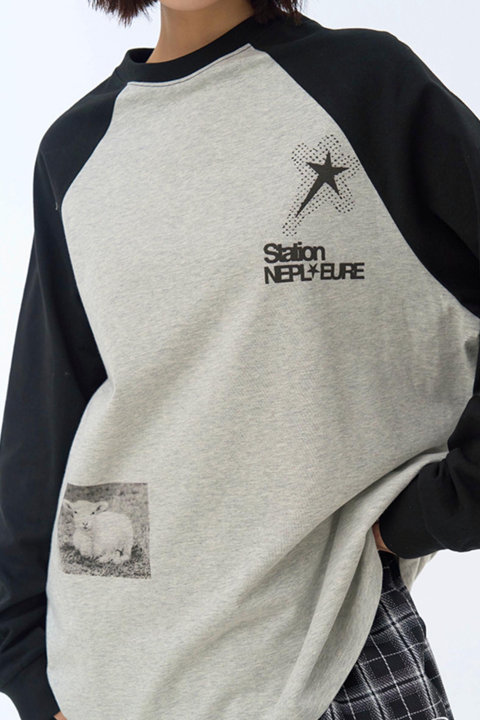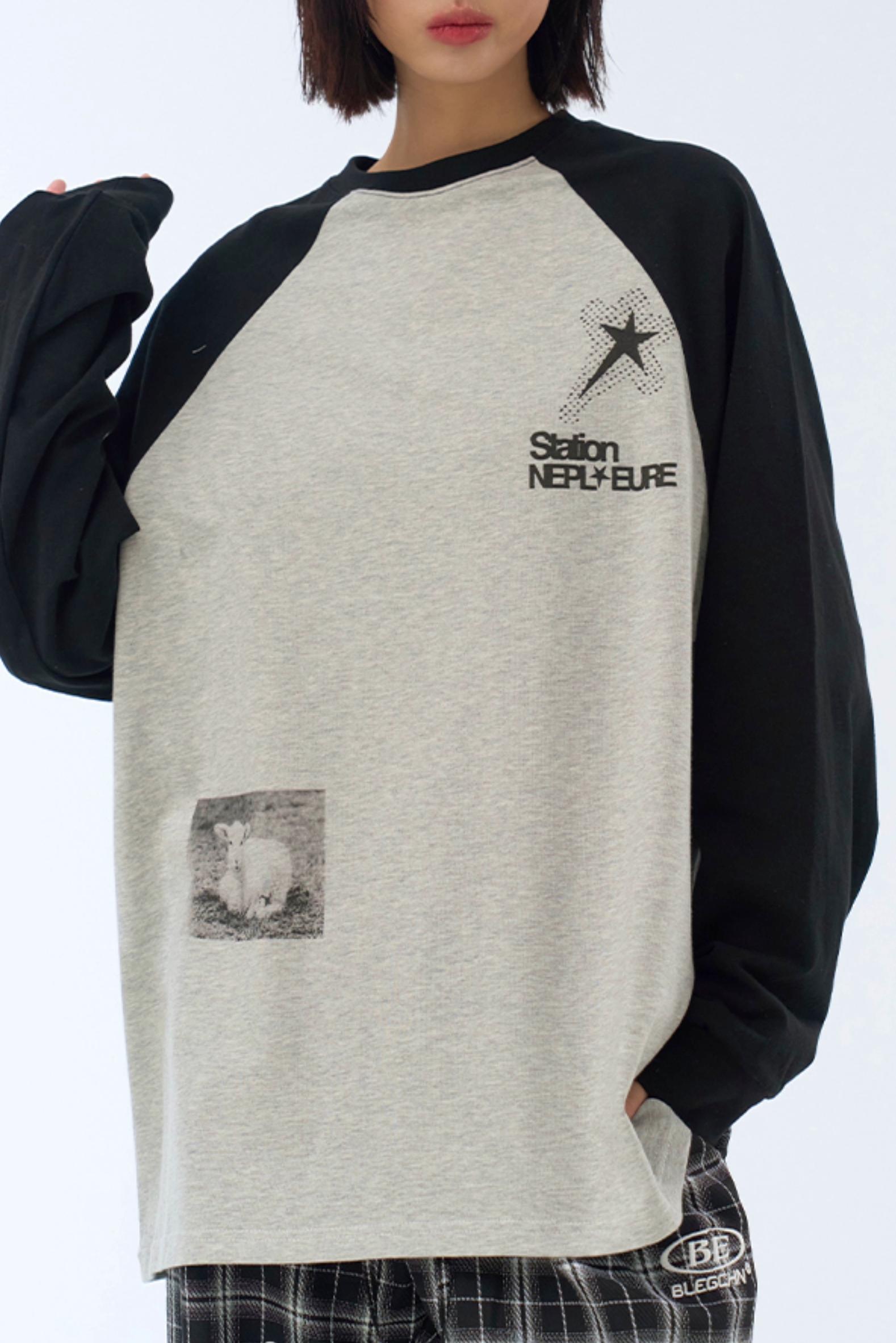 Fit Sleeve Loose Print Long T-Shirt Collision
