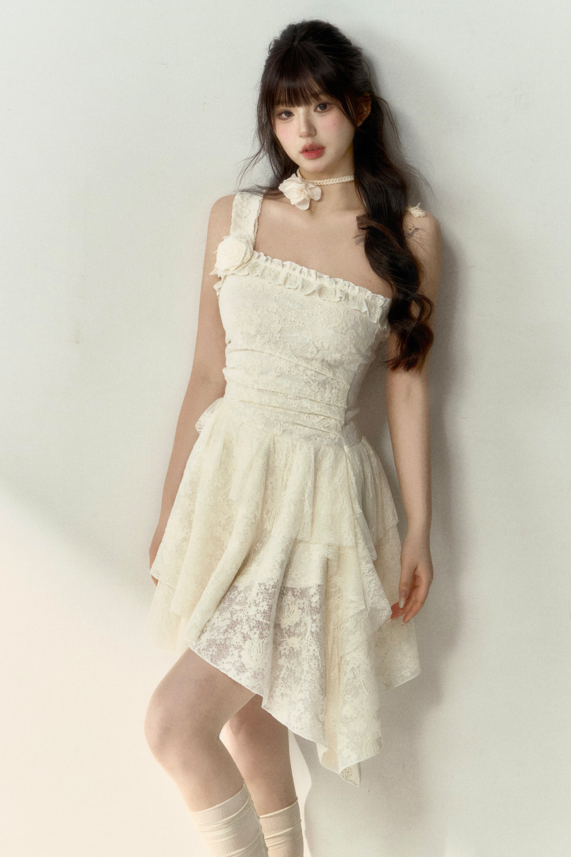 ❤Ärmelloses asymmetrisches Kleid mit Spitzenblumen❤