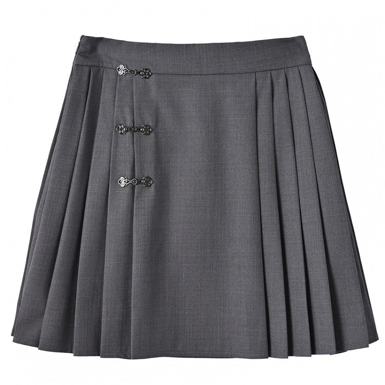 Machen Sie sich bereit für einen süßen und stylischen Look mit unserem grauen, oberschenkellangen Faltenrock mit Knotenknopf! Der Rock mit seinem adretten Knotenknopf-Design und dem oberschenkellangen Faltenstil verleiht jedem Outfit einen Hauch von Niedlichkeit. Perfekt für jeden Anlass – dieser Rock lässt Sie hübsch und modisch aussehen.