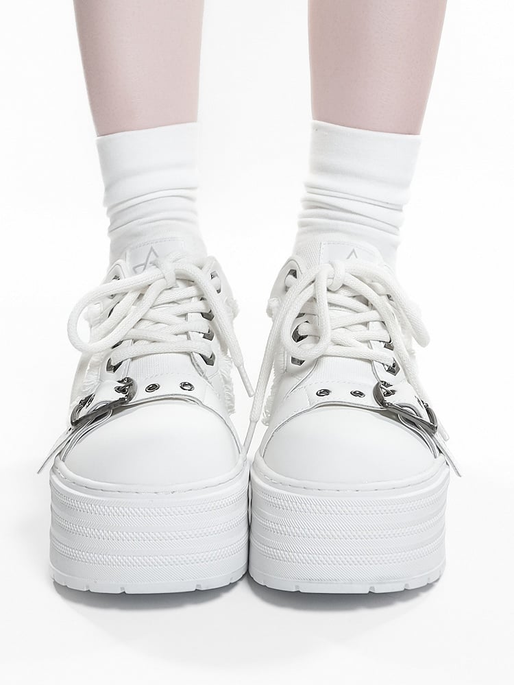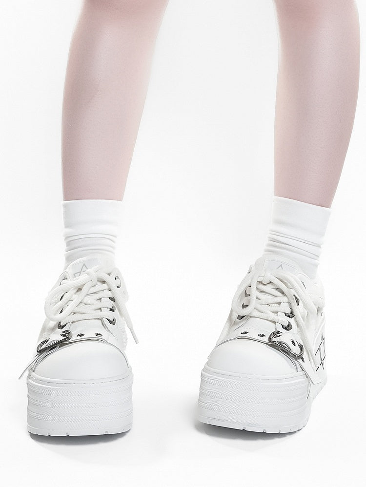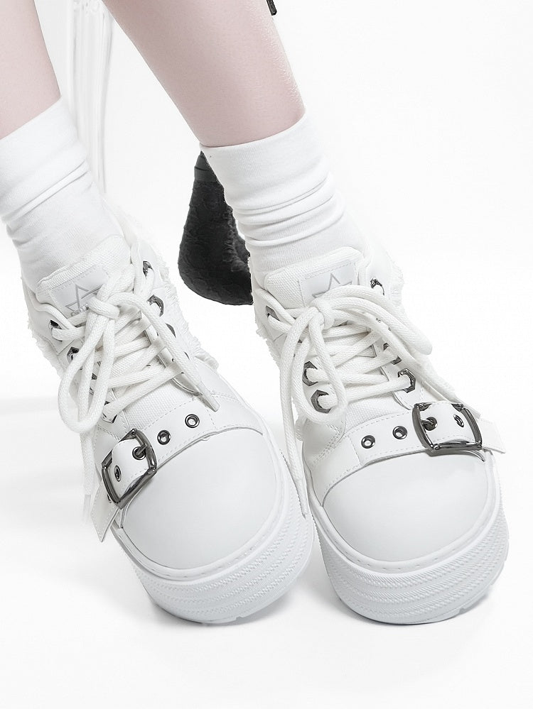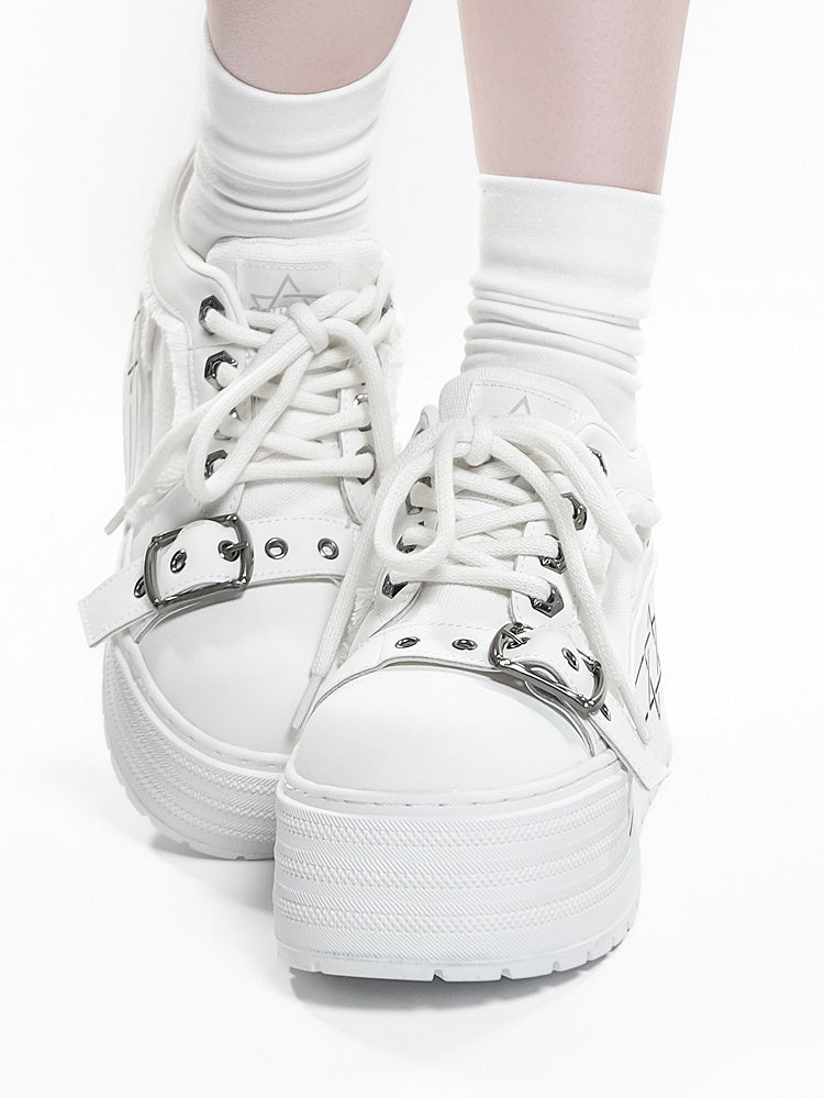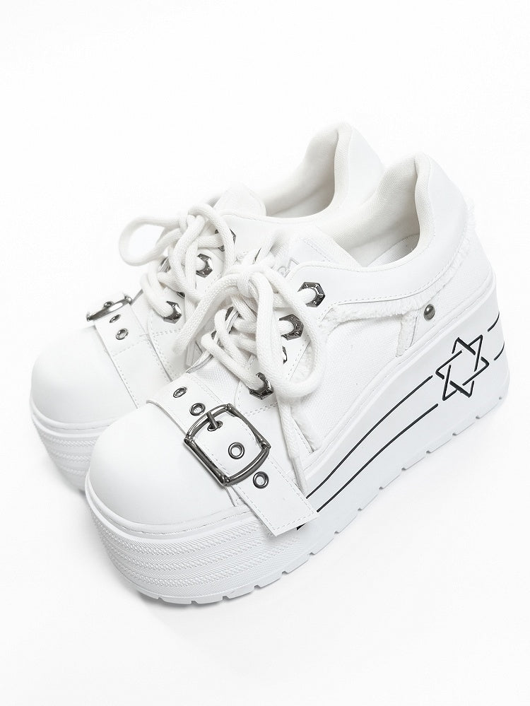 Hexagram Details, Buckle Decor & Raw Edge with Lace Fastening Punk White Platforms