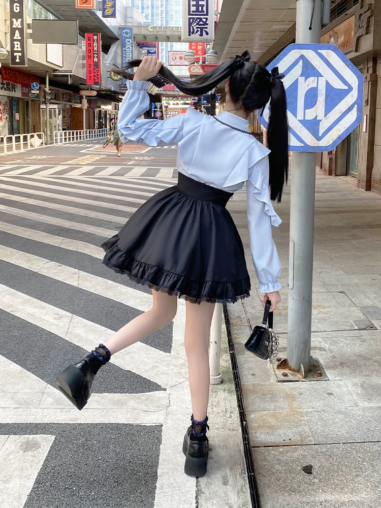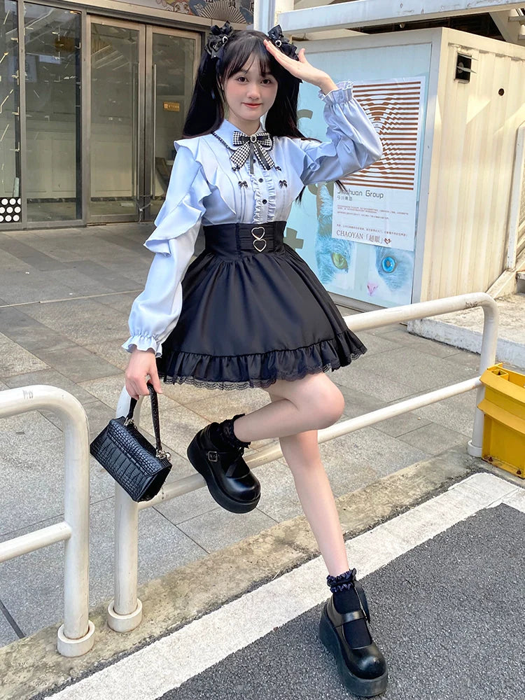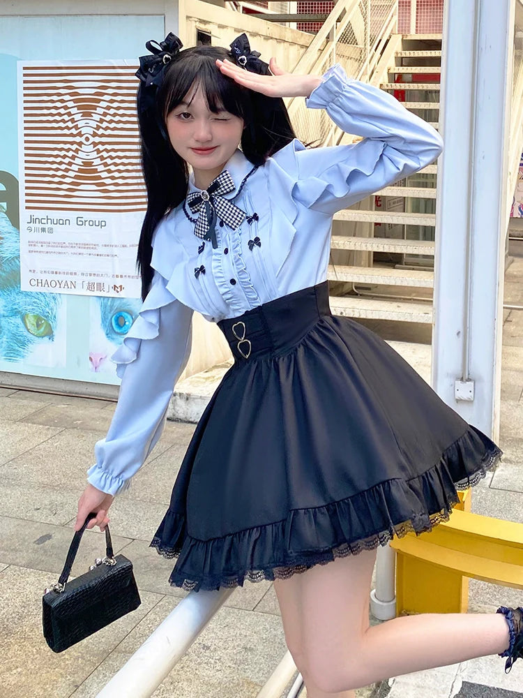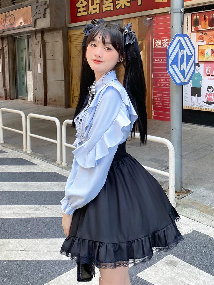 Hoch ausgestelltes Blau + Taillenbluse Süßer Rock