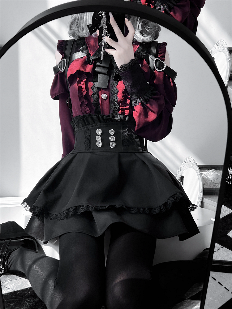 Jirai Button Blouse: Red Sweetheart Closure Wine Kei