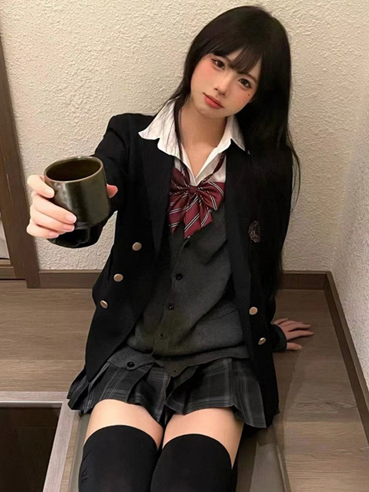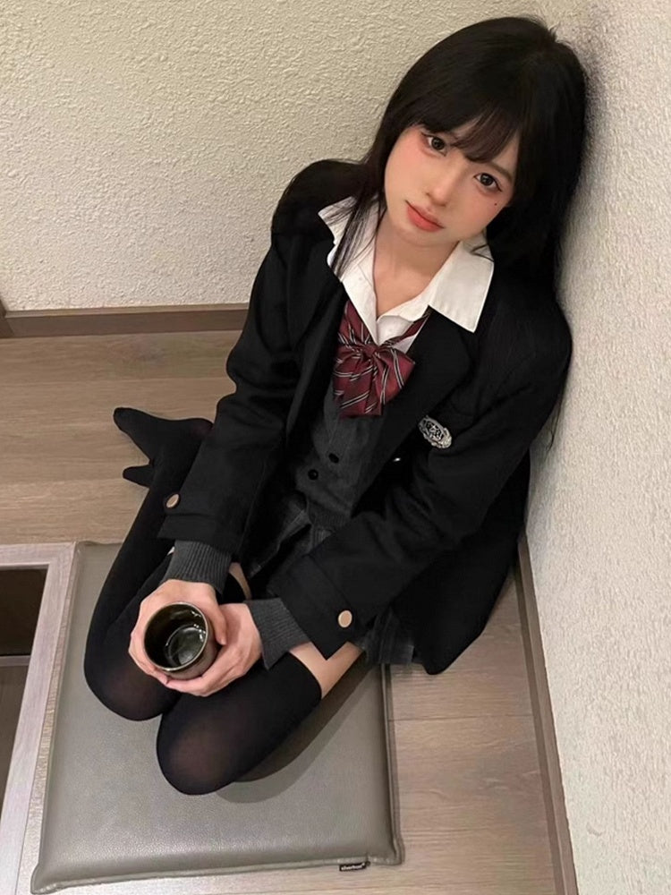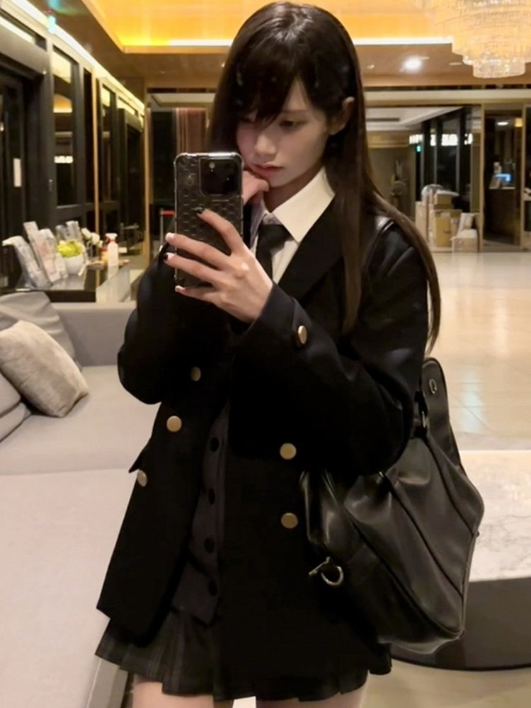 JK Dekoriert Blazer Blau Preppy Stil Abzeichen Uniform Dunkel