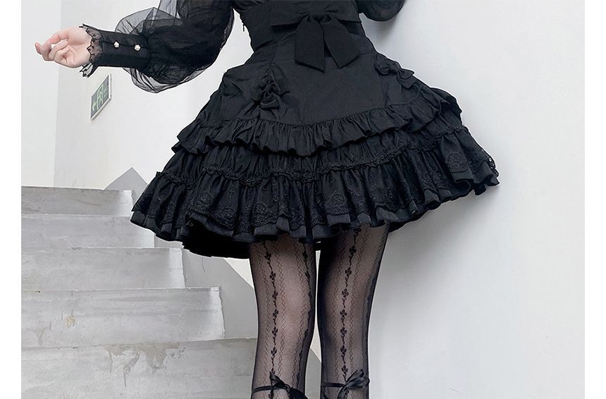 Schwarz-weißes Old School Lolita Fashion Kleid Bowknot Lolita JSK Set