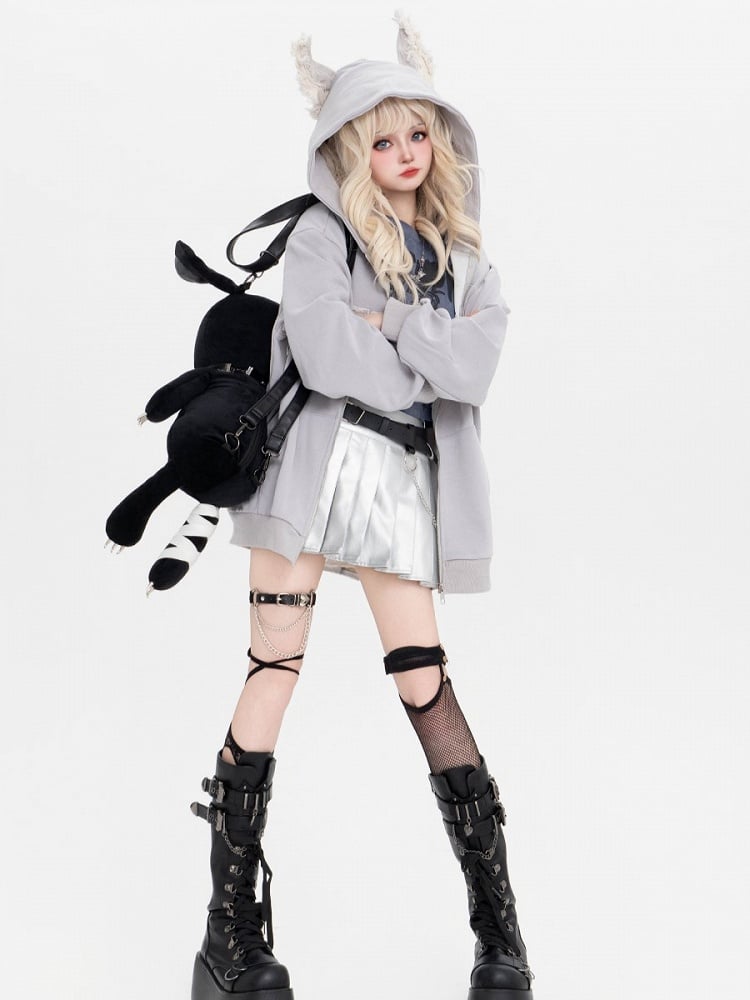 Leichter Hoodie Welpe Buchstaben Fleece und Ohren Grau Druck Applikation mit