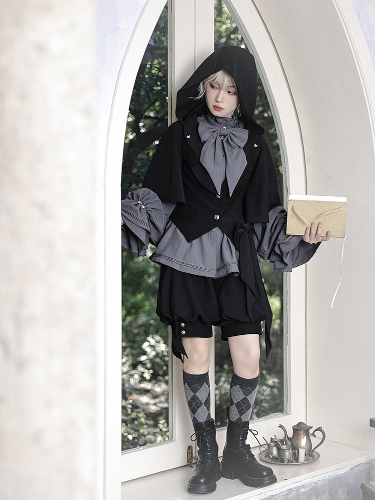 Lolita Shirt Grau Poet Ärmel Rüschen Mode Ouji Ausschnitt Bischof