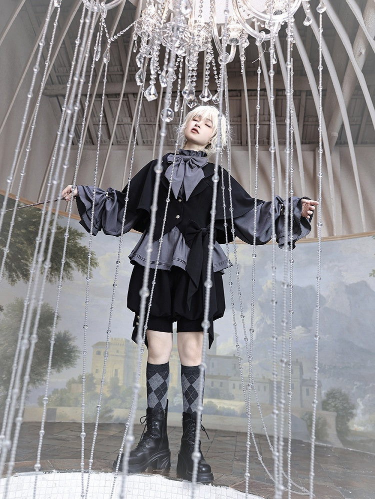 Schwarz-weißes Old School Lolita Fashion Kleid Bowknot Lolita JSK Set