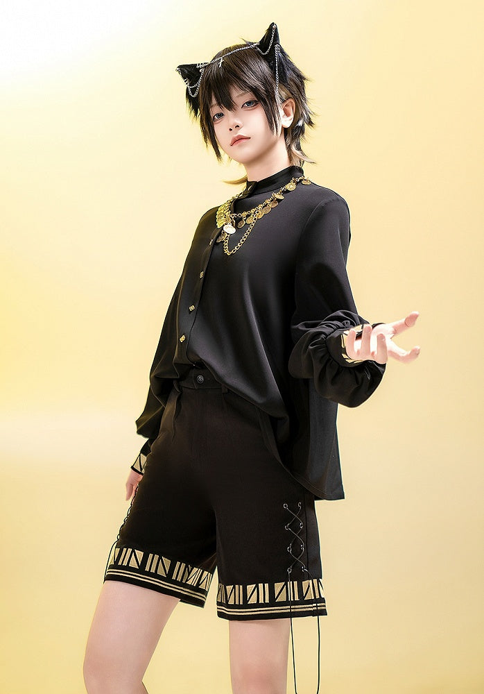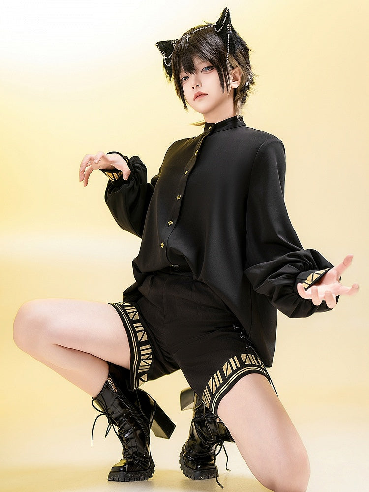 Schwarzes Ouji Lolita-Langarmhemd mit goldenen Stickereimanschetten im ägyptischen Stil