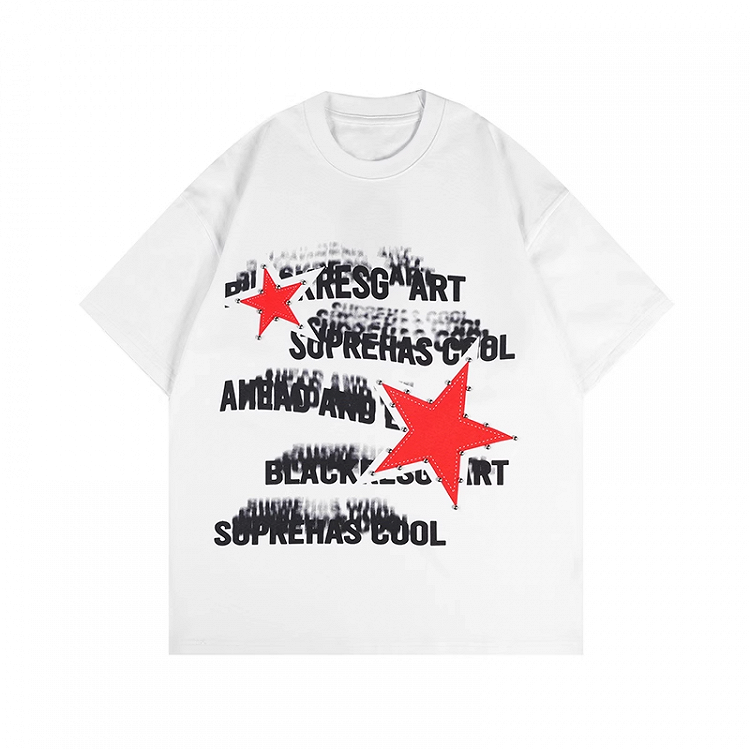 Loses T-Shirt Weiß Rundhals Stern Print Vintage
