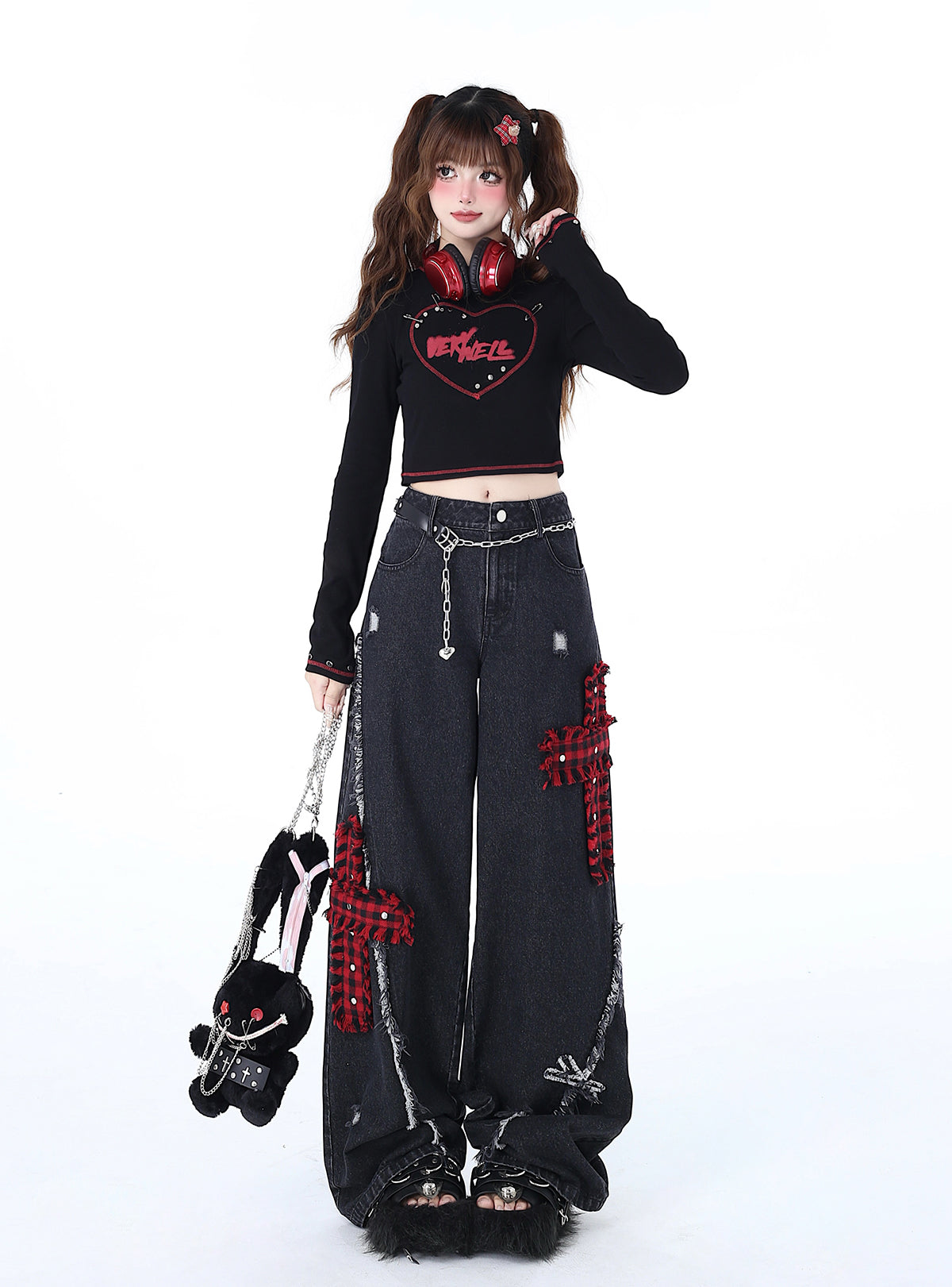 Love Fit Retro Girl Pin Print Top Schlank Hot