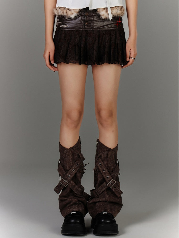 Mini-Spitzen-Patches Kaffee Plüsch Leopard Taille Mode Glamouröser Rock Millard Saum Gyaru