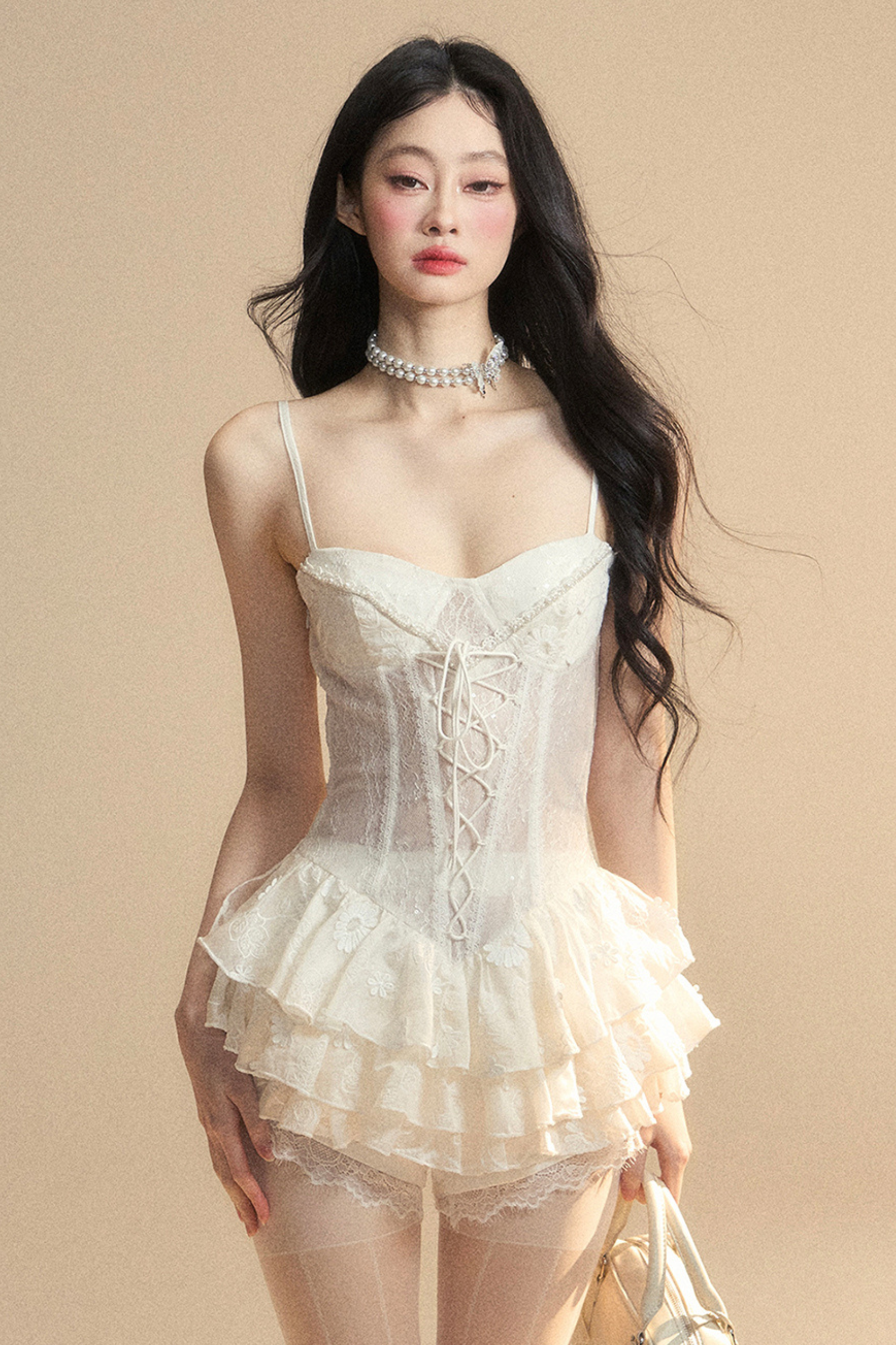 ❤Einschultriges Camisole-Kleid aus französischer Spitze❤